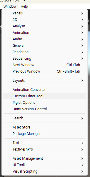 GetWindow<EditorTool>("Editor Tool"); // 에디터 창을 열고 타이틀을 설정