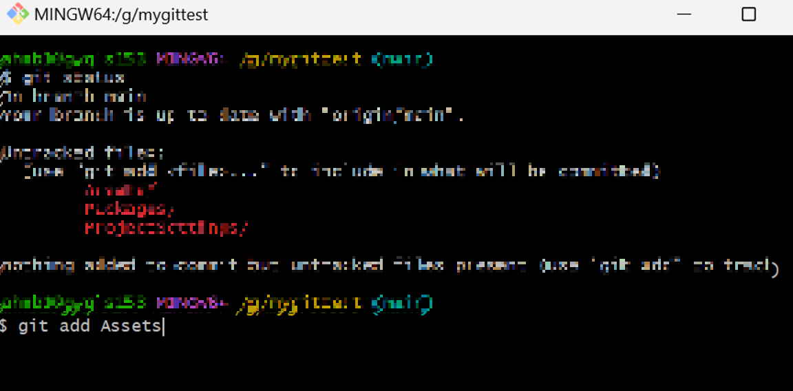 마찬가지로 Assets, Packages, ProjectSetting을 가져오고 우클릭 한 후 git bash를 킨다.