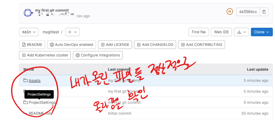 이 상태에서 커밋 푸쉬를 할건데 Tortoise Git을 이용한 방법과 git bash를 이용한 방법 두가지를 해보겠다.
