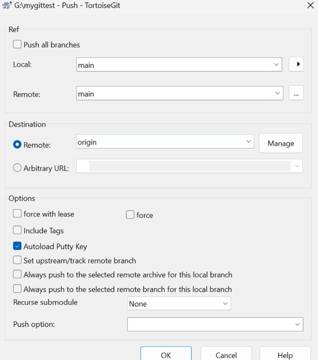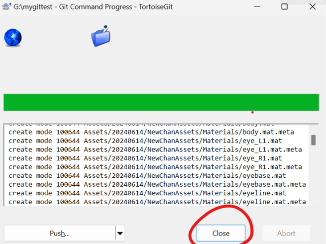 이 상태에서 Close를 눌렀으면 다시 우클릭후 Tortoise -> Push를 눌러준다.