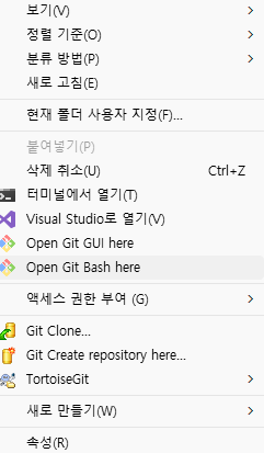 마찬가지로 우클릭 -> git bash를 클릭한다.