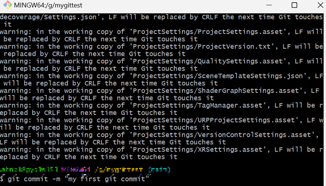 git commit -m "my first git commit” 을 입력하면 정상적으로 커밋된다.